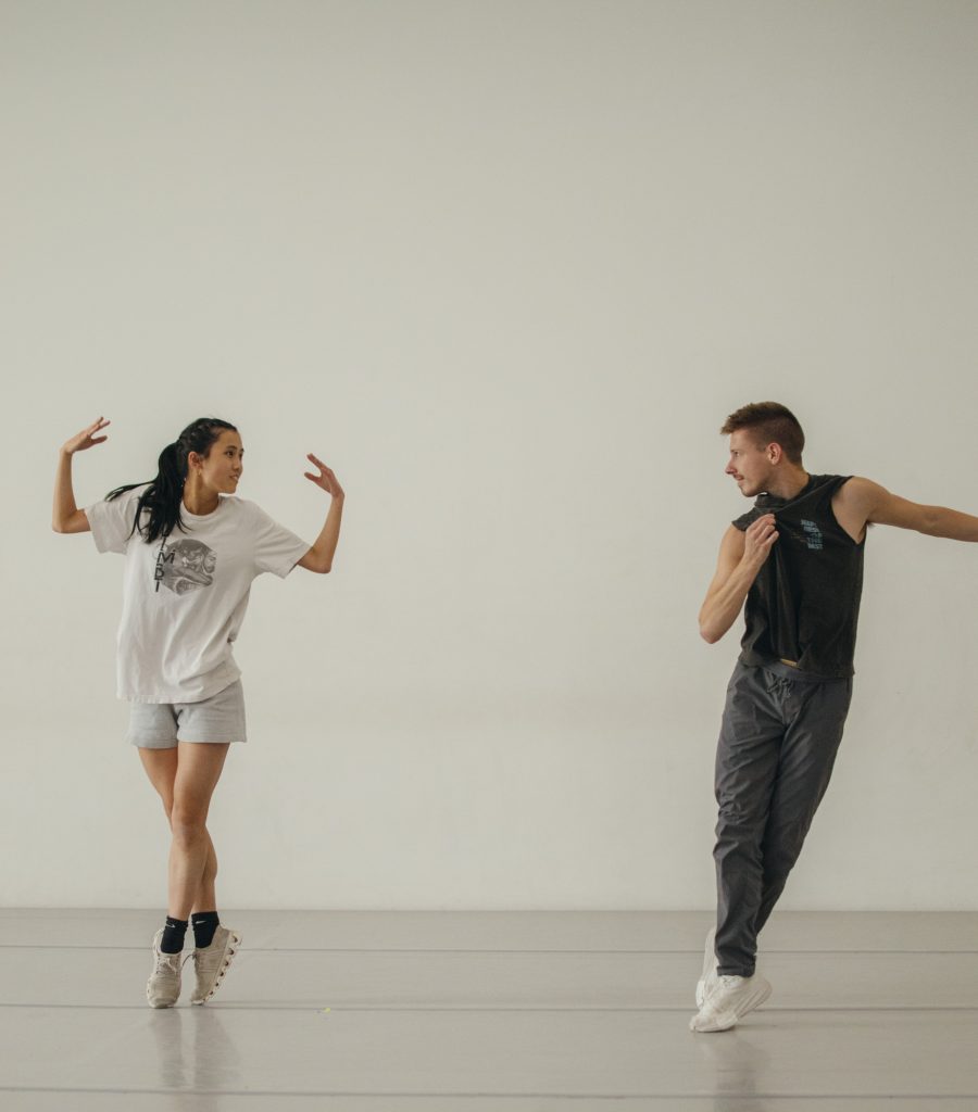 In rehearsal, Christian Clark and Georgia Dalton offered a preview of the costumes and the choreography. Clark, in an elegant cream-colored pantsuit, and Dalton, in a scarlet unitard, engaged in extended, seamlessly fluid sequences of partnering. Light’s vocabulary is neo-classical, but the lifts and adagio she devised for the couple have a sinuous, contemporary edge, drawing out both dancers’ grace and strength in equal measure.