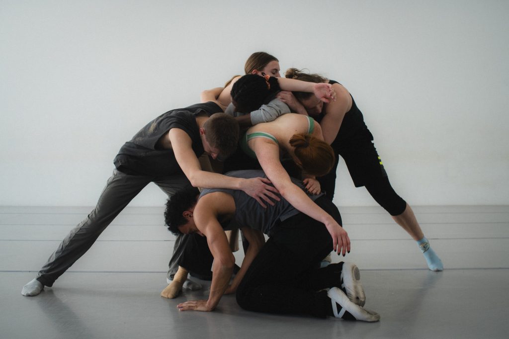 Traylor’s movement pulls and contorts the time signatures of Gershwin’s movement like taffy, finding the silence between the cascading notes of a glissando or marking the duration of whole and half notes with tight phrases that unspool like clockwork. Speaking about the connection between sound and gesture in Traylor’s new work, TMBT dancer Amalie Chase said, “It’s like if you looked at these two things on paper, they seem like they should be completely different, but, when I’m dancing, they just feel so right together. I can’t imagine this music going with anything else.”