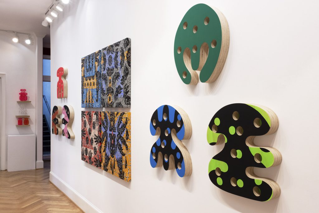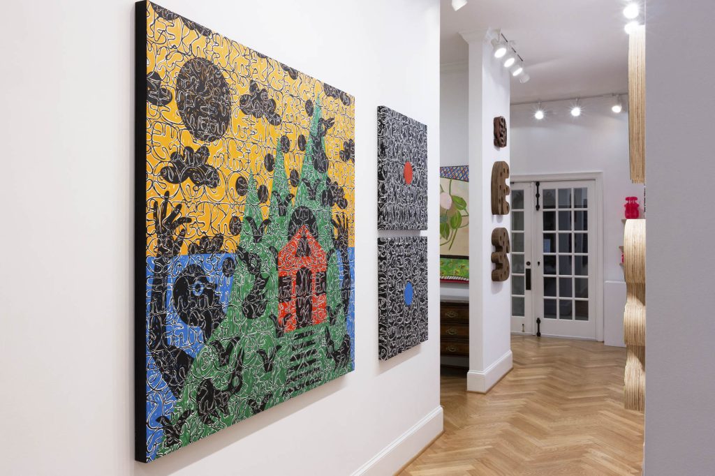 The four exhibitions bring together a vivid range of color and material, revealing processes rooted in intuition. Each artist embraces their process without full knowledge of what will emerge, which allows for symbols and forms to surface over time. This is reflected back at the viewer: The sensation of déjà vu becomes a way of filtering these works through your vision. In this exhibit are images we recognize but can’t always name.