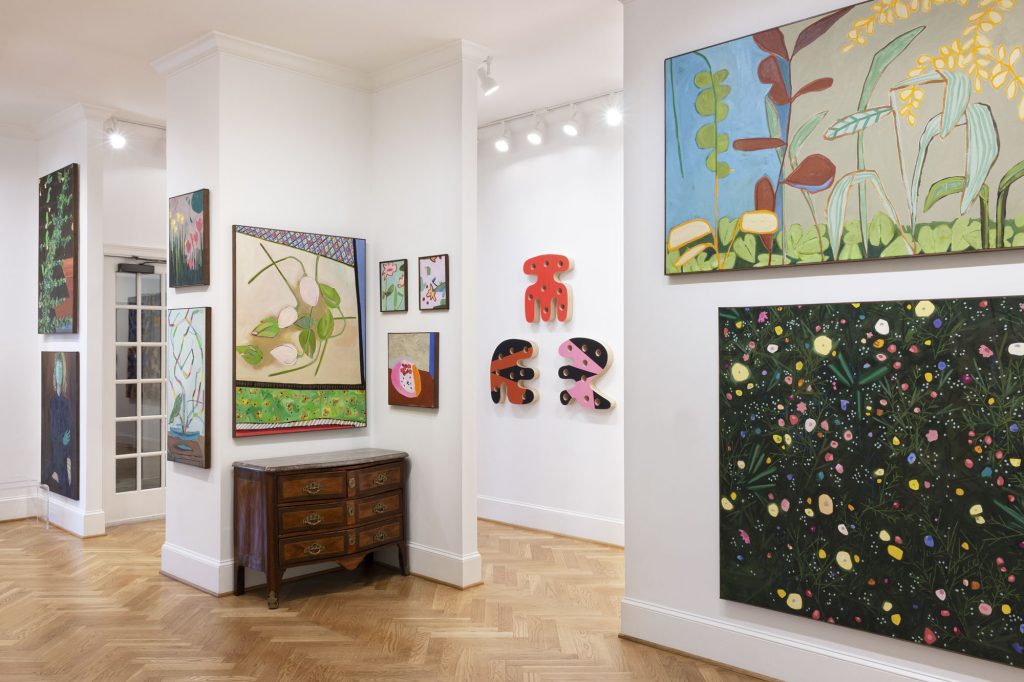 The flowers in his paintings were inspired by those at their home, where planting and tending to a garden became a shared way for his wife to reconnect with herself and created a beautiful space for their son.