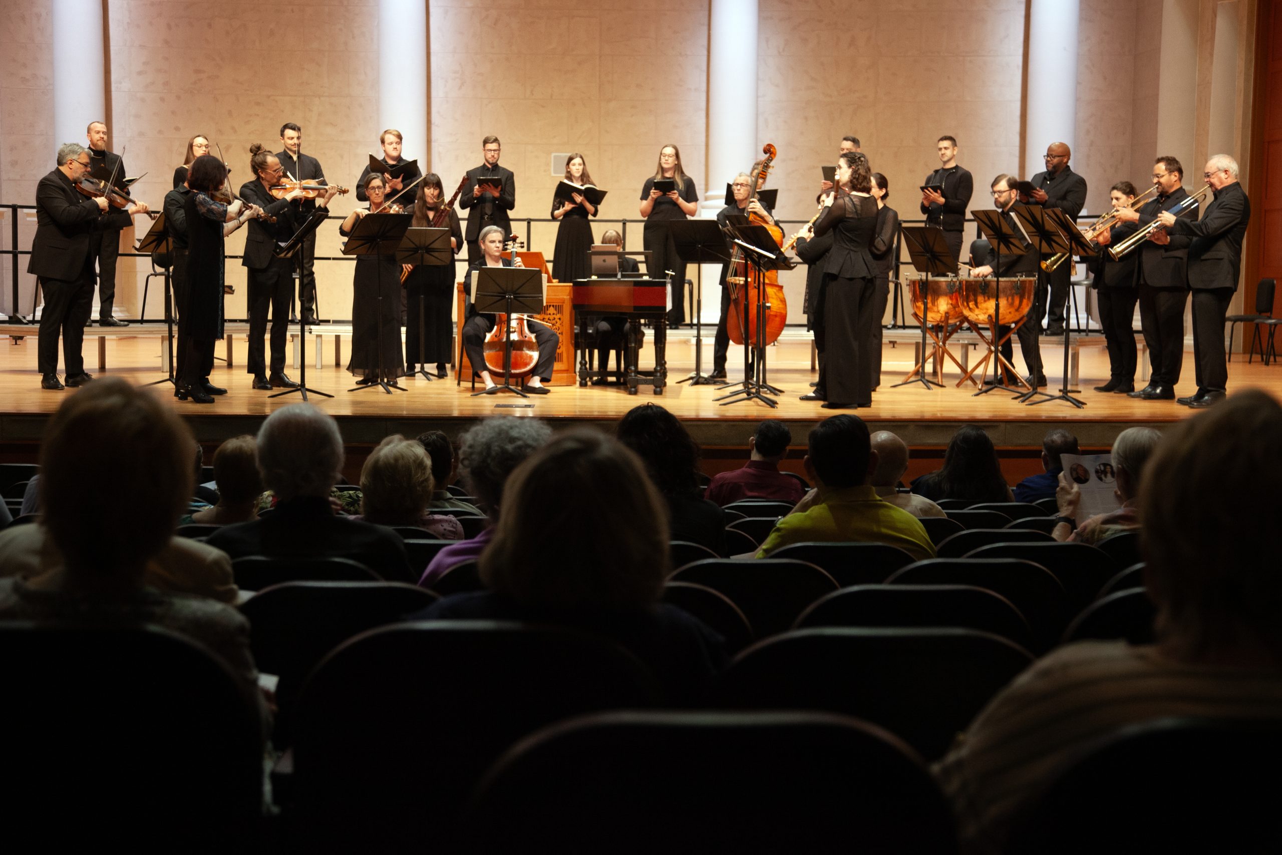 That stellar acoustic space gave the afternoon’s opener, George Philipp Telemann’s Concerto for 3 Trumpets and Timpani, TWV 54:D3, the kind of rousing pomp and circumstance it deserves. The harpsichord was chipper and robust, the horns warm and sonorous, and the winds intersected with the strings in a mutually complementary manner. It was a testament to how much instruments from the time period relied on the space itself.