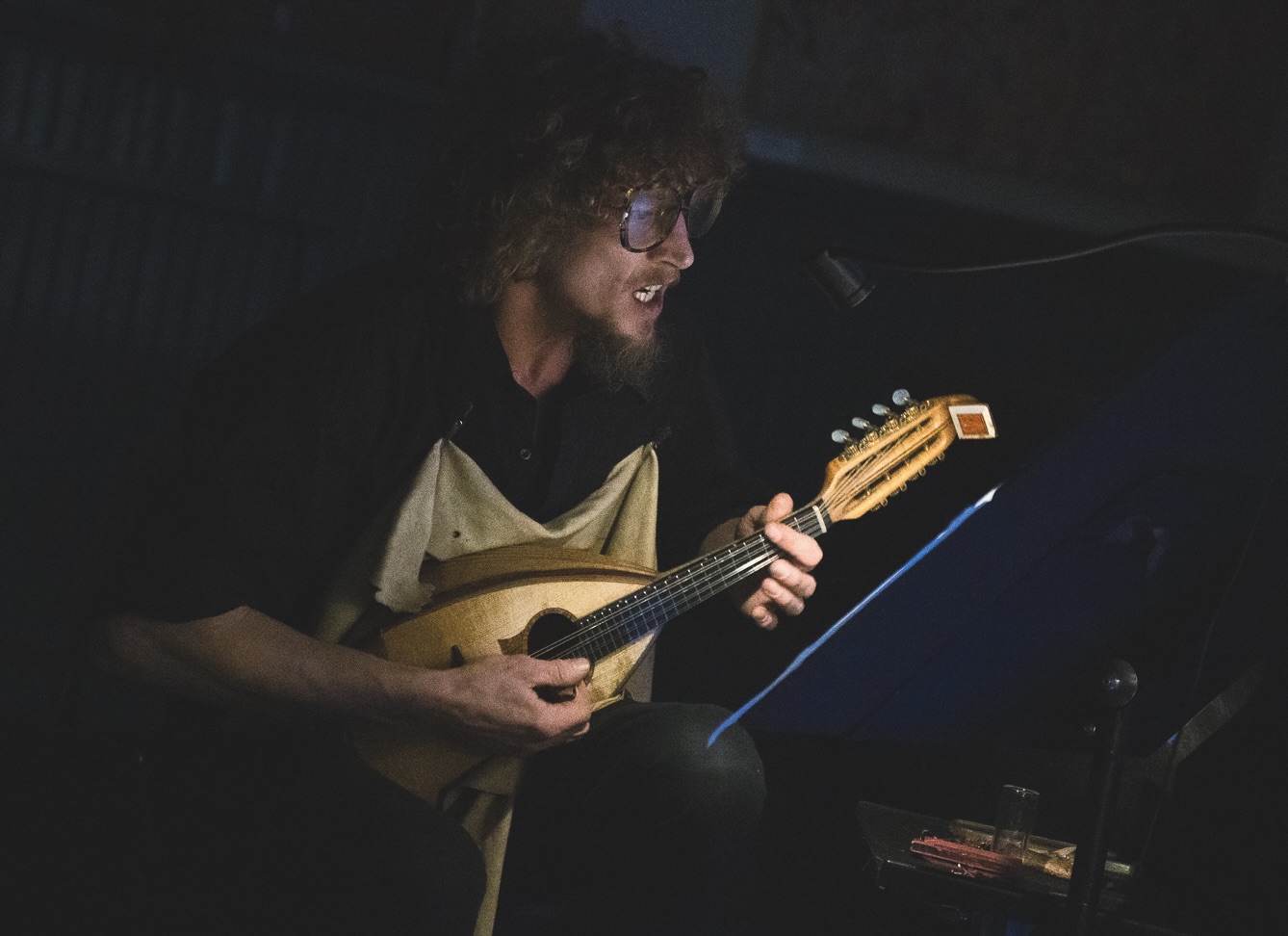 Assisting Araim in that endeavor was an orchestra consisting of Jeff Albert on bass trombone, Benjamin Shirley on prepared cello, Paul Stevens on percussion, and Araim on mandolin, voice and sampler. Rounding out the ensemble was vocalist and electronics manipulator Monique Osorio who narrated the proceedings.