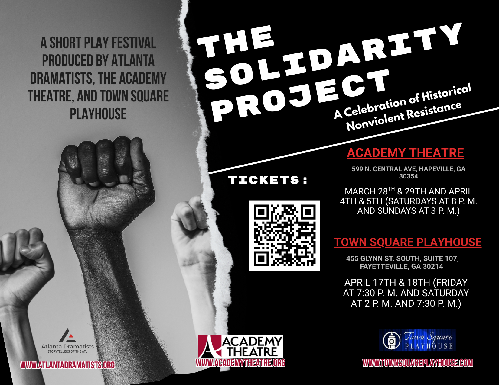 Atlanta Dramatists is delighted to announce its first ever fully staged and designed production, The Solidarity Project: A Celebration of Historical Nonviolent Resistance. This collection of short plays is timely, with pieces often highlighting both courage and resolute strength in the face of oppressive forces. Topics include the Civil Rights Movement, the Iranian Revolution, the Americans with...