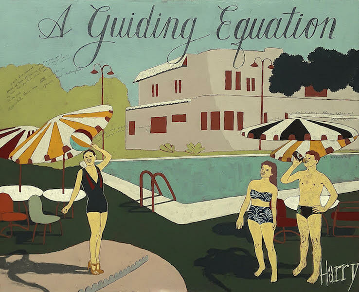 Like Prier’s work, Harry Underwood’s Outdoor Worship, at the WADDI through October 29, combines image with narrative. The self-taught Tennessee artist sometimes incorporates titles as headline-size words in singular portrayals of scenarios enacted against the backdrop of (mostly) Florida architecture, with a hedge maze as one of the exceptions.