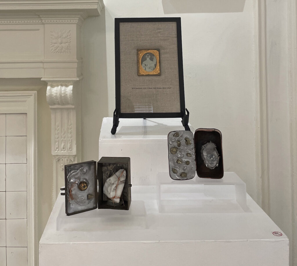 It is, if anything, a mark of authenticity that so few works demonstrate any obvious kinship with the classic visual documents of the Surrealist movement. The fragmented female torso of Lulu Aguero’s I’m Still Here has Surrealist antecedents, as do the poetically evocative relic boxes of Jean Hess’ Jack Winter, Arctic and Baby Moses. The same goes for the gigantic winged guardian figure in Tim Short’s Ebony III. Yet each of these stems from the artists’ own individual concerns, some of which have little to do with Surrealism. These larger contexts are omitted from this show, which deals only with their relationship with “dreams, the subconscious, automatism and the irrational.”
