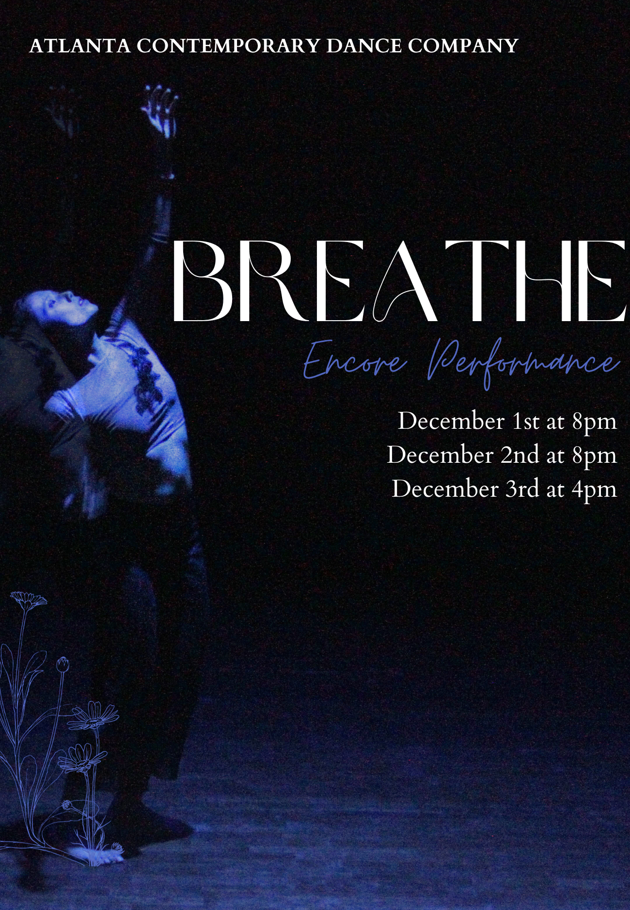 Breathe will captivate audiences through emotional connection. The show is a seamless 1-hour experience that includes the choreographic works of director, Lauren Overstreet, the lighting creations of designer David Reingold, and the utilization of props, each symbolizing the weight and the memory of loved ones lost. The show consists of 16 separate choreographic works, reflecting not only the different stages and sentiments of grief but, ultimately, how we find meaning in it.