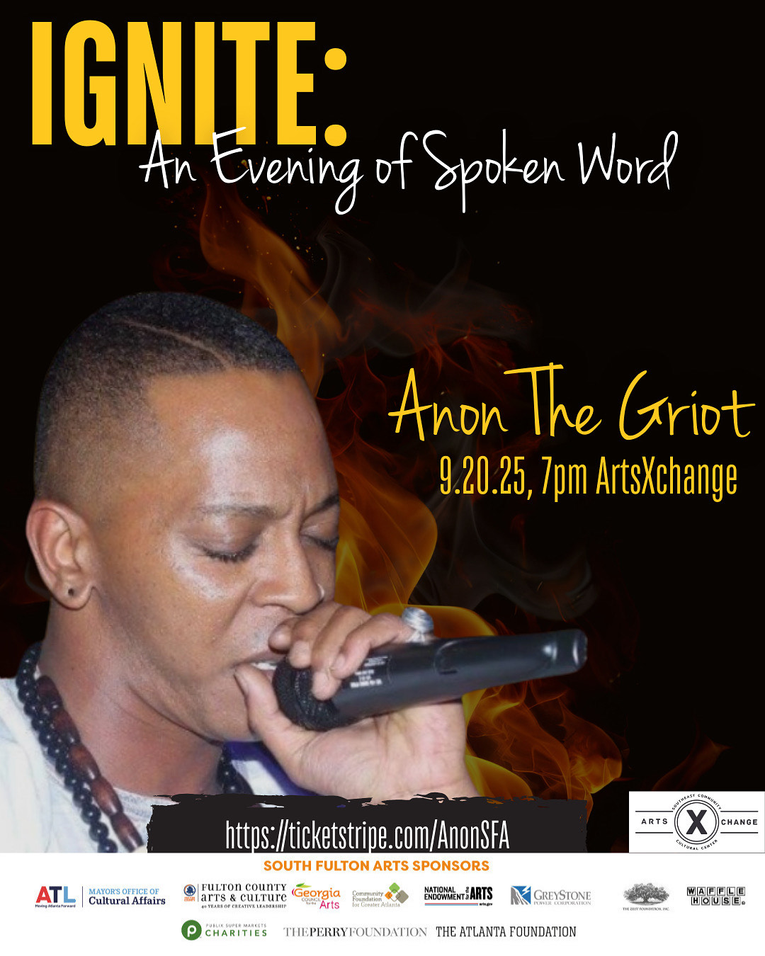 Ignite is a program brought to you by South Fulton Arts. It invites audiences to dive deep into the artistry of South Fulton County creatives as they blend performance and public speaking. The artists share key insights on their craft, process, inspiration, and more.