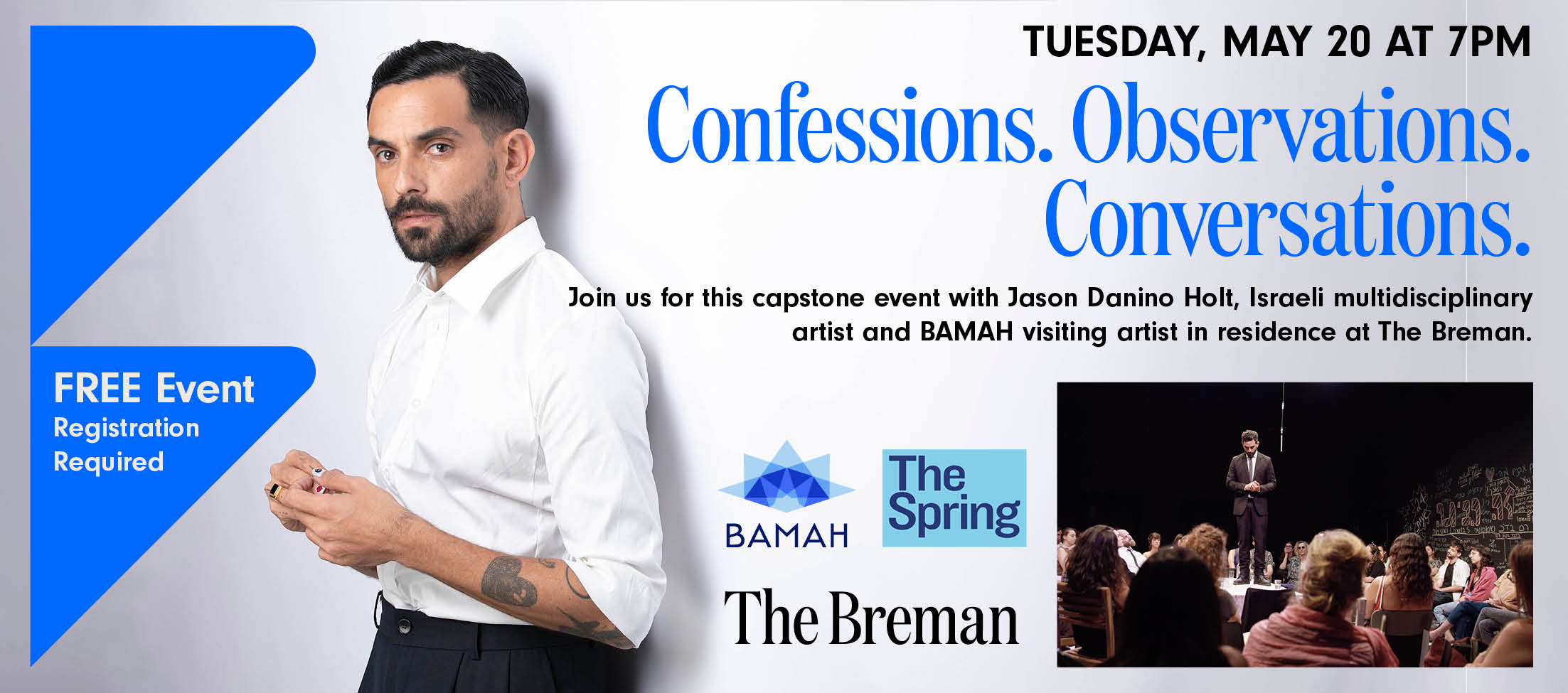Join us for this capstone event with BAMAH visiting artist, Jason Danino Holt, an Israeli multi-disciplinary artist and cultural engineer, who has been in residence at the Breman.
