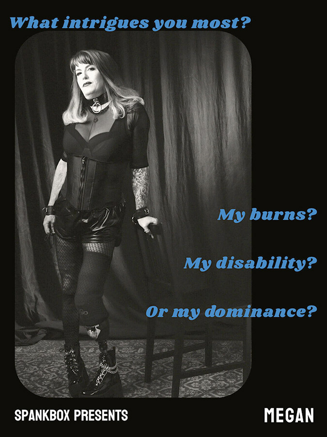 The imagery and language in the SPANKBOX series is purposefully sexually aggressive. It includes disabled bodies in sexy poses — viewers who like big asses, guys in jockstraps being penetrated or pendulous breasts might just get turned on.