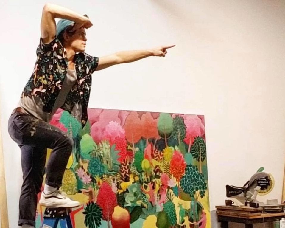 “It is my belief that knowledge about our space gives us the power to claim our spaces,” says Andrew Catanese, whose tapestry-like paintings of mythological scenes often incorporate native plants and flowers. “So often, we must live in places that never quite feel like home, but learning, naming and finding beauty in every corner of our neighborhoods gives us license to change that.”