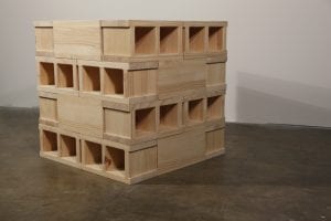 Ingram engages modernism as aesthetic and a metaphor for Western self-assurance in one of his best bodies of work. It’s based on the lowly cinderblock, the module of construction in modern buildings, which he elevates to an icon by dint of architectural arrangements of his beautifully hand-crafted wooden versions.
