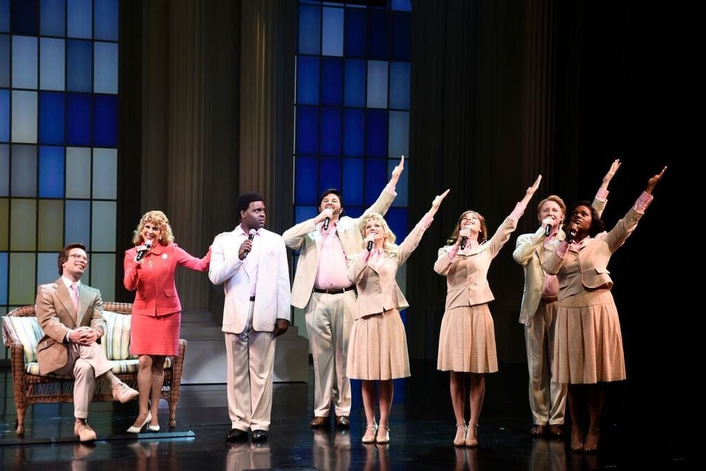 The first 20 minutes here are surprisingly stiff. Only when the kids go to PTL does it pick up. Some of the scenes at PTL are funny and garishly entertaining as the Winans try to fit in. William Ivey Long’s PTL costumes for Tammy Faye and the singers are often amusing.