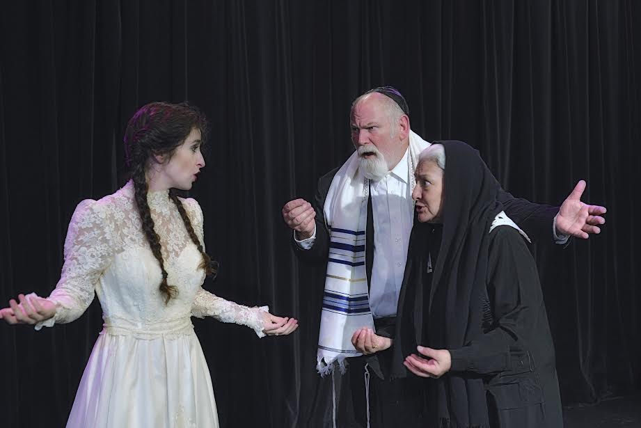 The company’s play is called The Dybbuk and it involves a bride possessed by her deceased former love. As rehearsals proceed and her life grows complex, Rivka begins to see Leah (Alyssa Caputo), the character she is bringing to life. At first there is humor in the situation — with Rivka marveling at how well Leah’s costume is stitched up — but then she realizes that she can learn some things from the character. With everyone trying to tell her what to do, and after their own agendas, Rivka could also use some girlfriend time.