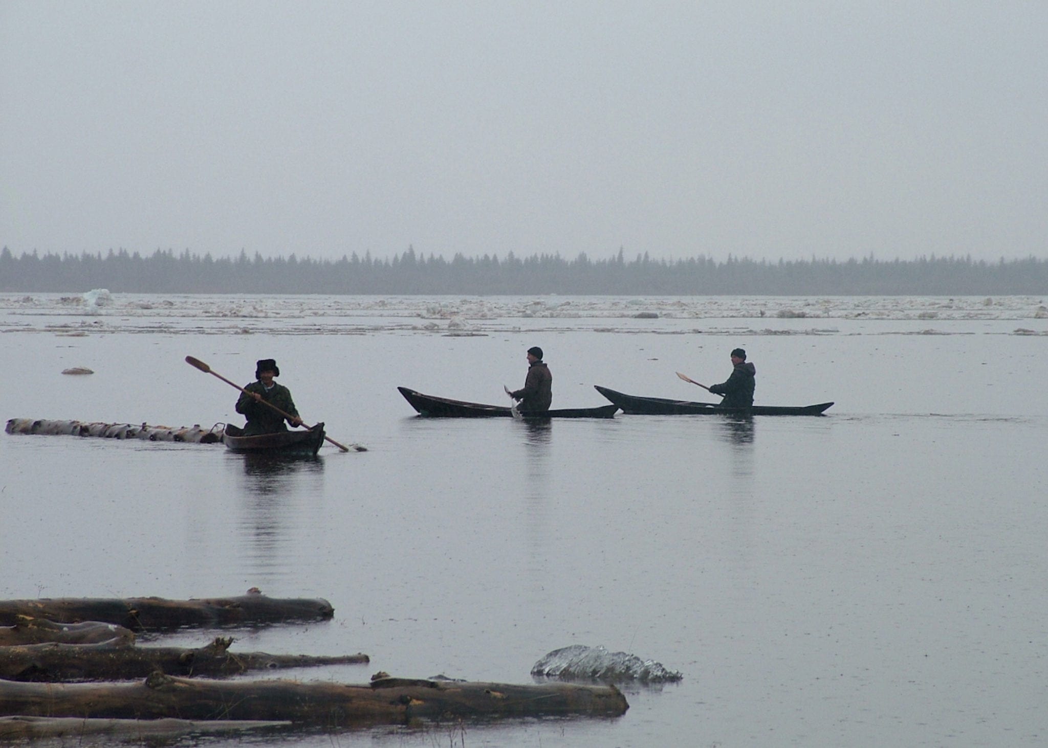 Divided into four seasons, starting with spring and the rumbling thaw of the frozen-solid river that runs beside the tiny village of Bakhtia, the movie focuses on three hunter-trappers virtually indistinguishable behind their beards. We watch as they spend the “warm” months hacking the guts out of enormous trees to make dugout canoes, carving snow skis out of giant logs, and brewing up their own mosquito repellent (a gross-sounding blend of tree tar and fish oil). But this busywork is all prologue. What signifies the worst patch of the year for most people — fall and winter — is their prime time.