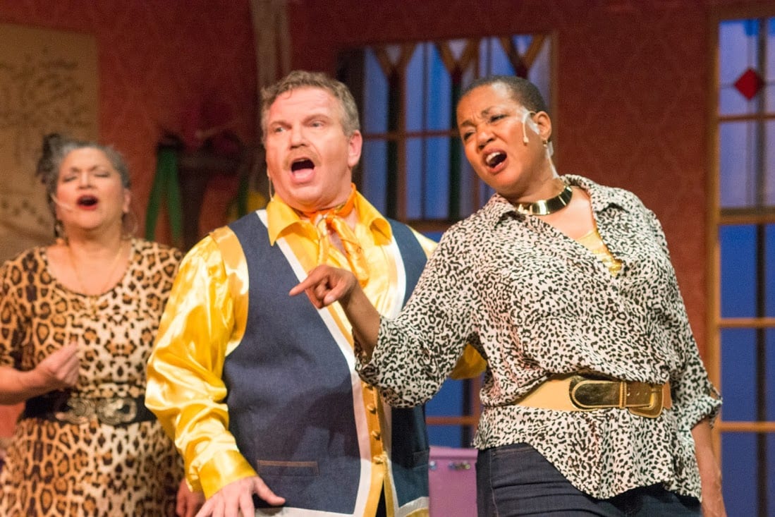 Larkins’ performance, however, is one-note as the bratty Wes, whose change of heart seems like it’s forced by the script instead of the character’s journey. His performance lacks emotional depth, which is a disservice to such a fun character. Hayes has a good voice, but is not at all believable as a man living a double life as a family man and a piano player at a gay club. And Quinn Hernandez doesn’t make the most of what could be boisterous moments onstage in tacky dresses and fun wigs. Conroy has directed a fun show, but the ensemble doesn’t quite deliver.