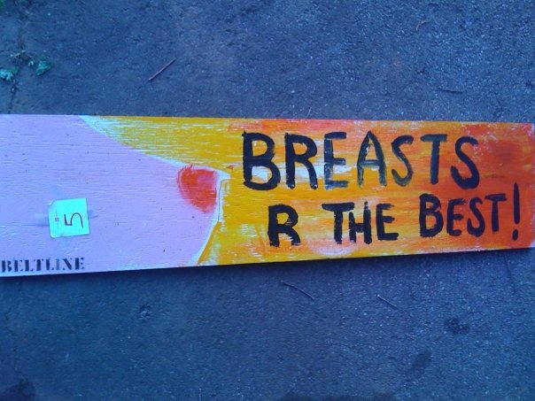 Those first “signs” — boards covered in community-created guerrilla-style art — ran the gamut from colorful, cutesy flowers and frolicking pets to more provocative declarations of “DANCE FOR UR VAGINA” and “BREASTS R THE BEST” (neither of which lasted long on the nascent trail). Poventud had been concerned about getting arrested or fined for the stunt, but Creative Loafing named it the best public art project of 2009.