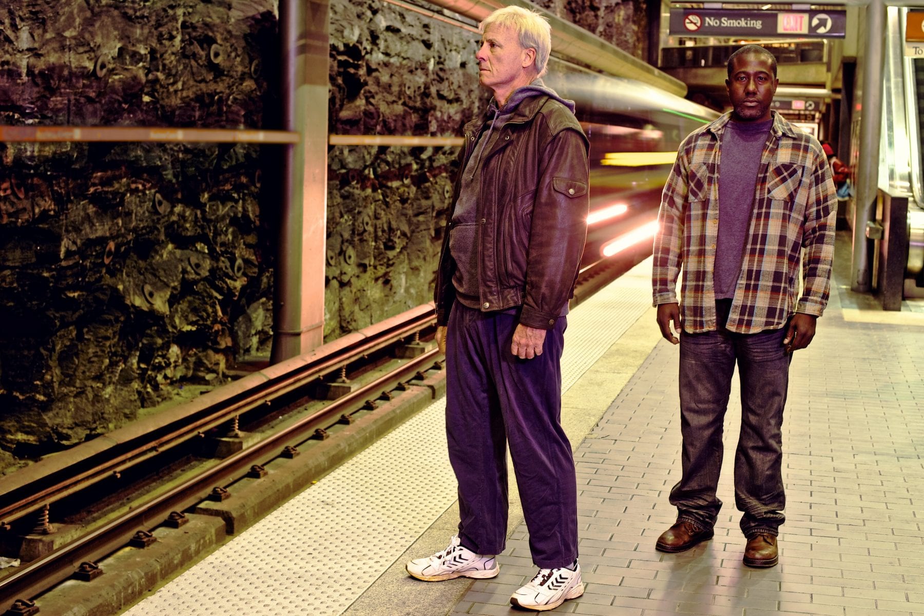 White checked out of his own life years ago and can see nothing but the beckoning abyss; as he himself says, the question isn’t why he tried to kill himself today, the question really is why he waited so long. Black, a much more vibrant character, tries to use his faith and humanity to penetrate White’s walls. (Photos by Chris Bartelski.)