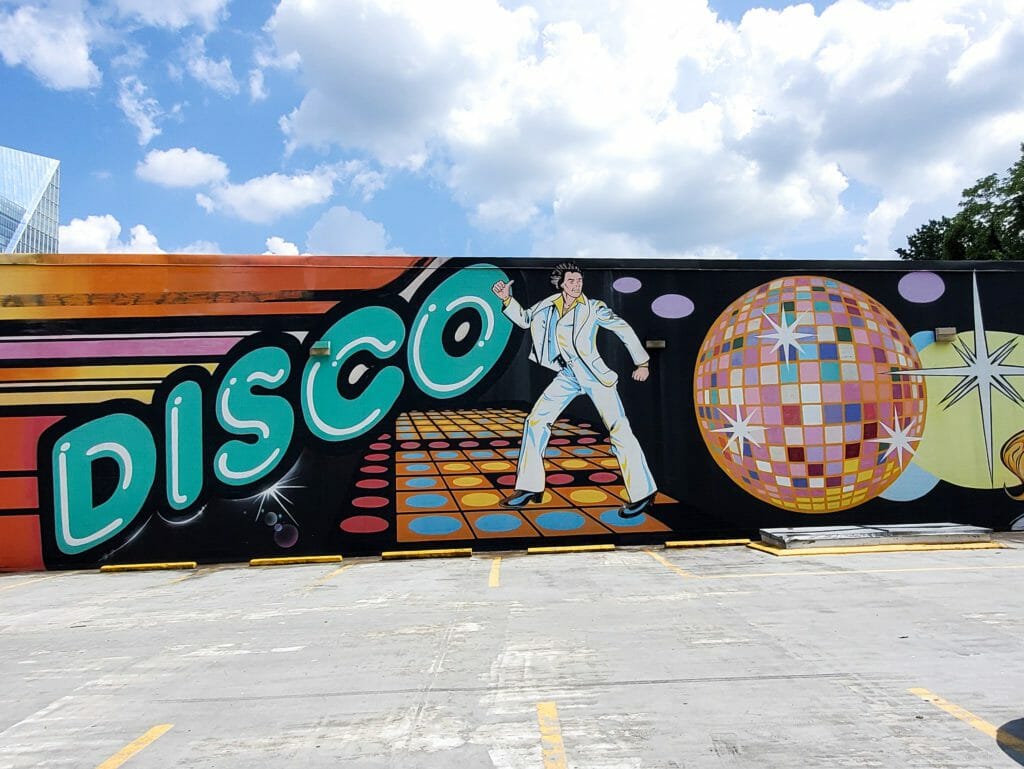 Those of us old enough to remember “big hair” know about the Limelight Disco in the heart of Buckhead during the 1980s. To this day, the nearby supermarket is still called the “Disco” Kroger. Dr. Dax and The Loss Prevention teamed up to memorialize the “Studio 54 of the South” with this giant mural behind the shopping mall that hosted this cultural icon. Dr. Dax is one of Atlanta’s most prolific street artists and is known for his signature bubble letters. The Loss Prevention gave us many of our city’s large scale murals such as the 70-foot tall “Hero” mural featuring John Lewis downtown.