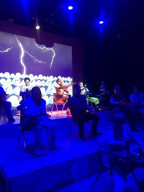Spirits To Enforce by Mickle Maher tells the story of a group of superheroes who have secluded themselves inside of a submarine to collect over-the-phone donations for their upcoming production of The Tempest by William Shakespeare. The plot of the show is based in an altered state of reality, offering a whimsical journey unbound by the laws of time and consciousness.
